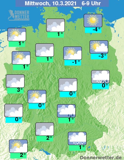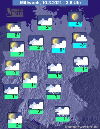 Die Temperaturen erreichen Werte um -4 Grad in Nordmecklenburg und 3 Grad in Köln.