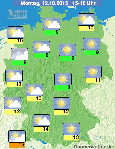 Heute Nachmittag ist es über der Osthälfte noch verbreitet sonnig, zum Teil ziehen hier im Nachmittagsverlauf aber auch schon ein paar Wolken auf. In den westlichen Bundesländern ziehen von Westen her jedoch einige, vor allem im äußeren Westen immer dichterwerdende Wolken durch. Bei Höchstwerten von 8 Grad im Nördlichen Harzvorland und immerhin 15 Grad im Breisgau bleibt es überall trocken.