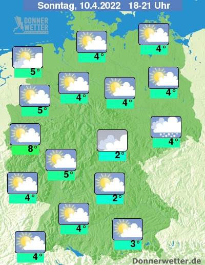 Heute Abend kann sich mehr und mehr die Sonne durchsetzen. Letzte Schauer mit Schnee oder Graupel bilden sich noch von Thüringen bis nach Sachsen, sonst bleibt es bei meist lockerer bis wechselnder Bewölkung trocken. Die Temperatur liegt bei 2 Grad in Jena und bis 8 Grad in Bonn.