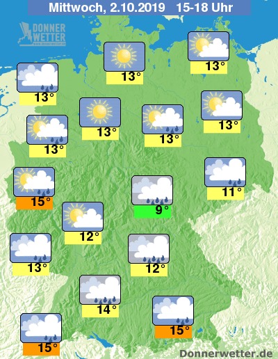 Am frühen Nachmittag fällt südöstlich einer Linie vom Saarland, über Südhessen, Thüringen bis nach Sachsen aus kompakten Schichtwolken noch längere Zeit Regen, regional auch kräftig. Die Schneefallgrenze sinkt in den Alpen bis zum Abend unter 2000 m. Im übrigen Bereich gibt es eine Mischung aus kurzen Aufheiterungen und mächtigen Schauerwolken. Örtlich blitzt und donnert es dabei auch und es können sich Graupelkörner unter die Tropfen mischen.