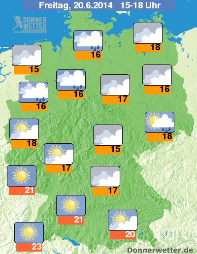 Heute Nachmittag bilden sich vor allem vom Emsland bis zur norddeutschen Tiefebene, sowie in Sachsen weitere Schauer, zum Teil sind auch kurze Gewitter möglich. Sonst ist es meist wechselnd, teils stark bewölkt und meist trocken. Überwiegend freundlich ist es im Südwesten der Republik, hier ist die längste Sonnenscheindauer zu erwarten. Die Temperaturen liegen bei 15 Grad an der Ems und rund 23 Grad im Raum Freiburg.