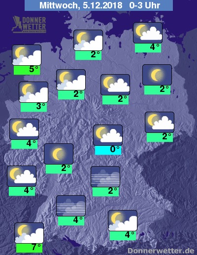 In der Nacht zeigt sich der Himmel zunächst verbreitet locker oder aufgelockert bewölkt, regional auch sternenklar. Entlang der Donau kann sich örtlich Nebel bilden.