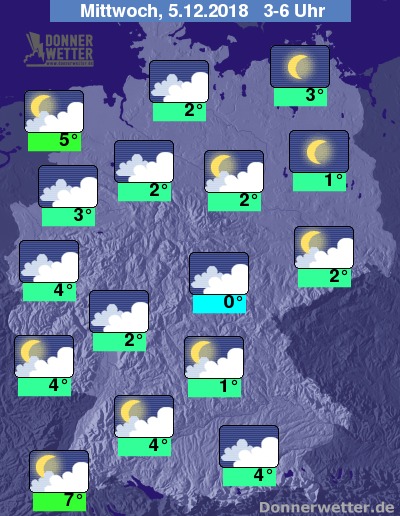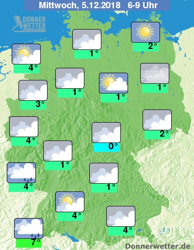 Die Temperaturen sinken auf Werte um 7 Grad C am Oberrhein und um 0 Grad C im Thüringer Wald.