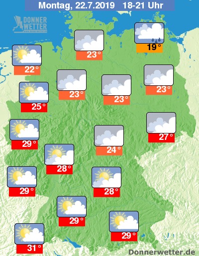 In den späteren Abendstunden lockern die Wolken im Norden verbreitet auf, vielfach ist es dann sternenklar. Dichtere Wolken, die selten auch mal einen Schauer bringen können, halten sich dann meist nur noch entlang der Oder. Im Süden Deutschlands überwiegen lockere Wolken.
