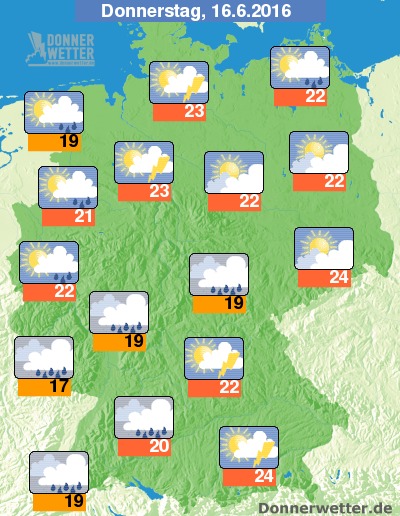 Immerhin spielen die Temperaturen meist mit: Höchstwerte um 19 Grad C in Ostfriesland und um 24 Grad C in Dresden.