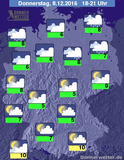 Die Höchstwerte liegen heute zwischen 5 Grad in Thüringen und Hessen und 10 Grad in Südbaden und im Alpenvorland.