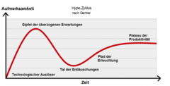 Viel Hype um nichts? Angekommen im Tal der Enttäuschung - der Hype-Zyklus nach Gartner.