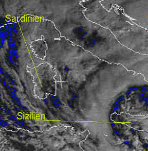 Ein großes Tiefdruckgebiet über Sizilien bringt im gesamten