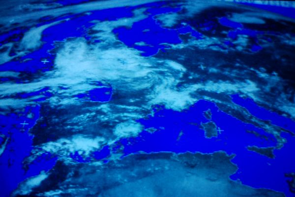 Diese Aufnahme aus unserem Bildarchiv zeigt ein Sturmtief über Europa im Jahre 1990.