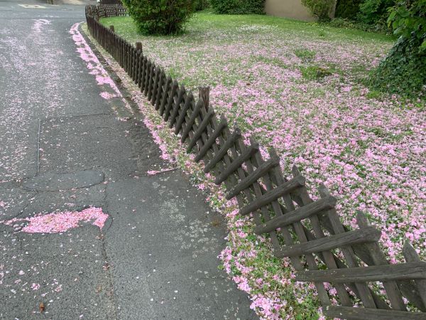 Nachbars Zierkirsche wurde durch Sturmtief "Eugen" am Dienstag ordentlich durchgeschüttelt - die einstige Blütenpracht am Baum pflastert nun die Straße und füllt so manches Schlagloch auf "natürliche" Weise wieder auf.