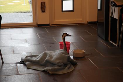 Auf Weg in den Süden verletzter Kranich - von unseren Mitarbeitern im November 2012 aufgefunden.