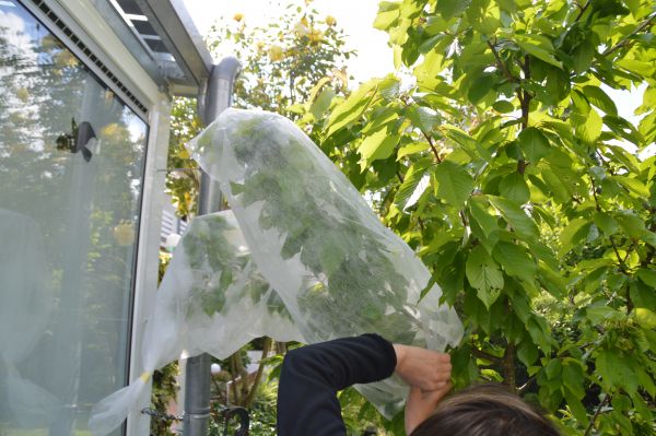 Sich entwickelnde Früchte sollten nun geschützt werden.
