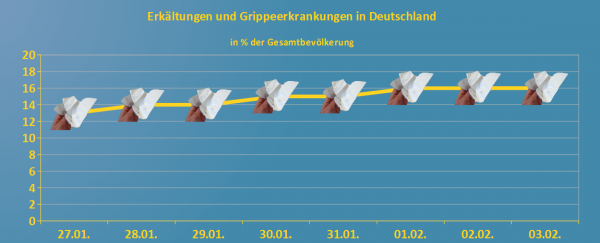 Bis zum Ende der Woche schlagen sich bis zu 16% der Bevölkerung mit einer Erkältung oder Grippeerkrankung herum.