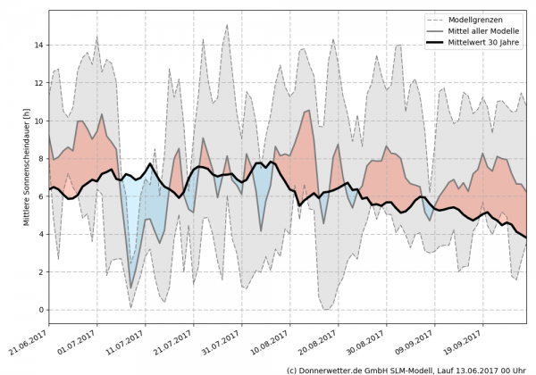 Etwas am Wetter auszusetzen haben dürften in den nächsten Wochen eigentlich nur diejenigen, die heiße Sommertage bevorzugen - aber die sind im Norden ja eh rar gesät. Bis Ende August deuten sich nämlich weiterhin eher gemäßigte Tagesmitteltemperaturen im Norden an. Abgesehen von der zweiten Julidekade ist es dabei zumeist überdurchschnittlich sonnig und es fällt weniger Regen als im langjährigen Mittel.