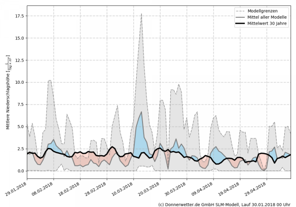 Unsere aktuellen Langfristprognosen für Lufttemperatur, Sonnenscheindauer und Niederschlagshöhe.