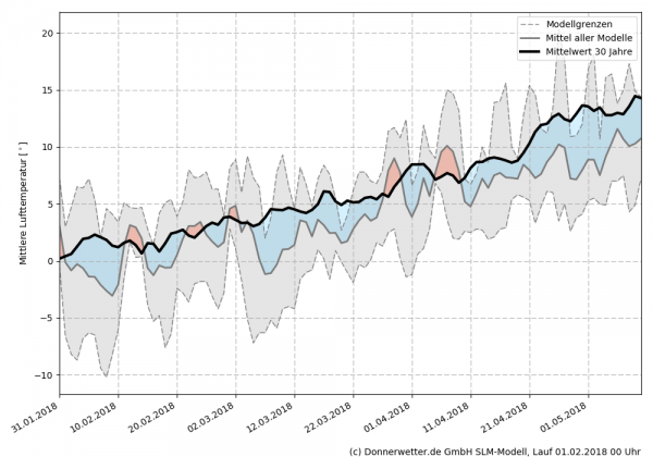 Unsere aktuellen Langfristprognosen für Lufttemperatur, Sonnenscheindauer und Niederschlagshöhe.
