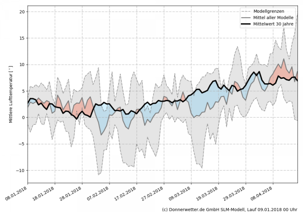 Nach einer meist zu milden Wetterphase bis Anfang Februar stellen sich im weiteren Monatsverlauf wieder zu kalte Lufttemperaturen ein. Die zu erwartenden Niederschlagssummen im restlichen Monat liegen meist über, die Sonnenstunden unter dem langjährigen Mittelwert.