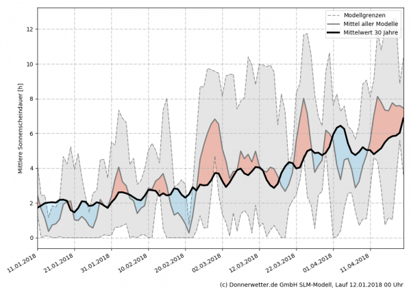 Trockene Wetterphasen gewinnen mittel- und längerfristig im Osten zwar die Überhand, das Temperaturniveau bewegt sich über weite Strecken aber unterhalb der Norm. Besonders sonnenreiche Abschnitte sind laut aktueller Modellrechnungen vor allem Anfang kommenden Monats und dann um Mitte Februar herum auszumachen.