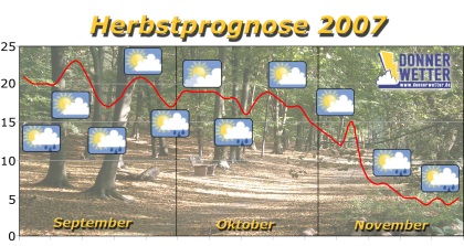 Nun stehen die Chancen aber nicht schlecht, dass der Oktober recht mild und zeitweise auch golden wird. Insgesamt wird es, trotz einiger Regenperioden, ein 'lieblicher' Monat. Der November kann dann auch schon den ersten Wintereinbruch bieten.