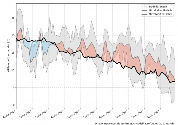Vergleichsweise warme aber nicht immer trockene Tage kommen in den nächsten Wochen auf den Süden der Republik zu. Komplett fällt der Spätsommer und Herbst in Bayern und Baden-Württemberg aber nicht ins Wasser: Vor allem in der ersten Septemberdekade sowie über weite Teile des Oktobers kündigen sich auch immer wieder längere sonnige Phasen an.