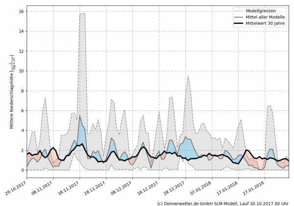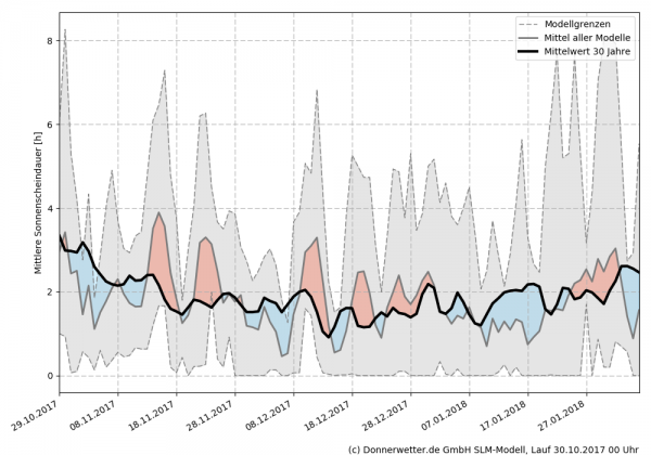 Wie unsere Modelle den Wetterverlauf für den Ostteil des Landes bis Ende Januar aktuell berechnen, sehen Sie in den drei Grafiken.