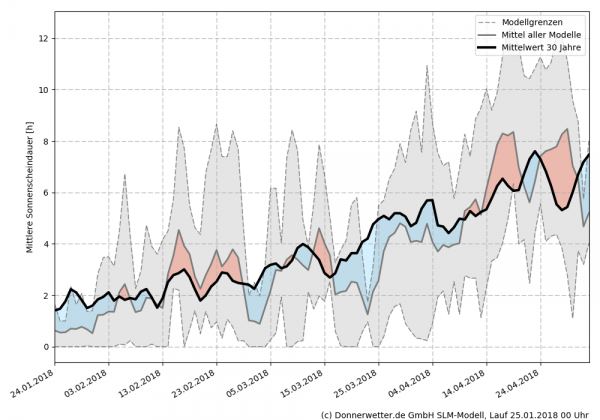 Unsere aktuellen Langfristprognosen für Lufttemperatur, Sonnenscheindauer und Niederschlagshöhe.