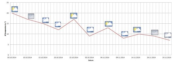 Milde Hochdrucklagen begleiten uns zunächst im Oktober. Um die Monatsmitte herum sinken dann die Temperaturen kurzzeitig ab, nass-kaltes Wetter wird bestimmend.