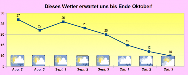 Temperaturen und allgemeines Wetter nach Monatsdekaden bis Ende Oktober
