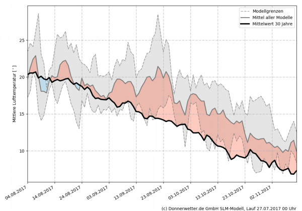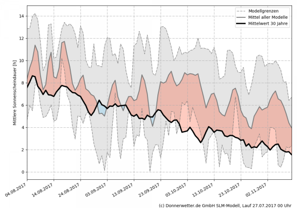 Der Farbe Rot werden eine Menge Bedeutungen und Wirkungen nachgesagt. So soll sie uns nicht nur im Straßenverkehr vor Gefahren warnen, sondern uns auch beleben und helfen, die inneren Kräfte zu sammeln. Letztere Wirkungen passen sehr gut, da zumindest zwei unserer aktuellen Langfristgrafiken heute in überwiegend "positivem Rot" erstrahlen. Nach den Wettereskapaden der letzten Tagen und Wochen hat der Spätsommer und Herbst laut aktueller Berechnungen noch eine Menge sonnige wie warme Tage in petto. Belebung pur bevor es in die dunkle Jahreszeit geht!