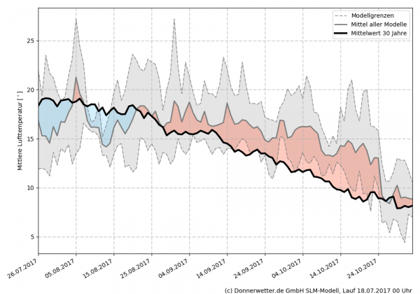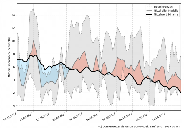 Die sonnig-warmen Prognose für den Spätsommer haben auch weiterhin Bestand: Eine längere Phase mit Lufttemperaturen deutlich über dem langjährigen Mittel kündigt sich ab der letzten Augustdekade an. Bis weit in den Oktober hinein darf sich der Norden zudem über eine hohe Anzahl an Sonnenstunden freuen. Die zu erwartenden Niederschlagsmengen liegen über weite Teile des Prognosezeitraumes unter dem 30-Jahres-Mittel.
