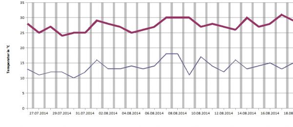 Auch für den September zeichnet sich eine zu hohe Temperatur und eher Trockenheit ab.