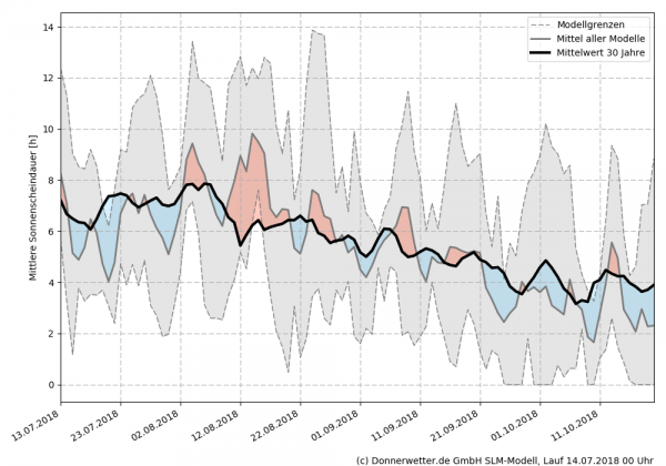 Unsere aktuellen Langfristmodelle zeigen in Norddeustchland einen leichten Abgang der mittleren Lufttemperatur auch die Sonnenscheindauer scheint im Monat Juli geschwächt zu sein, denn dort liegen wir meist unter dem Jahresdurchschnitt. Doch ab August stehen uns viele sonnenreiche Tage an.