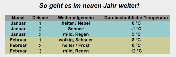 Die Aussichten für den Januar und Februar!