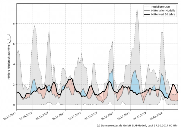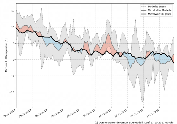 Wie unsere Modelle den Wetterverlauf für den Ostteil des Landes bis Januar 2018 aktuell berechnen, sehen Sie in den drei Grafiken.