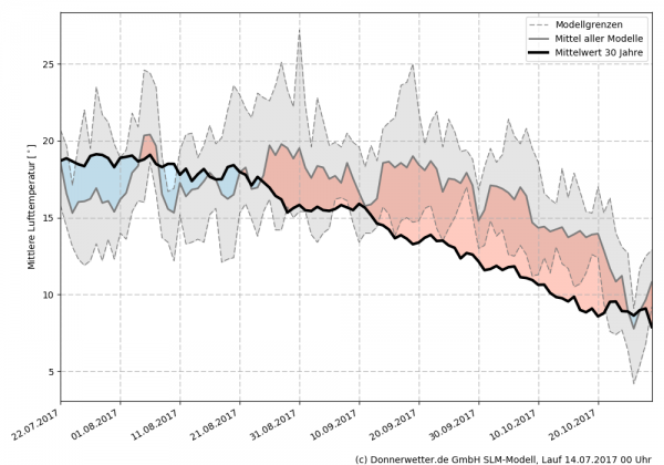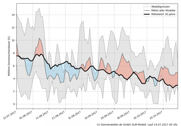 Nicht nur der Westen steuert, treffen die aktuellen Modellläufe zu, auf einen sehr sonnigen und warmen Spätsommer und Frühherbst zu - auch für den Norden sind die Aussichten zur Zeit golden. Zwischen Ende August und Ende Oktober sehen die Temperaturmodelle die mittleren Lufttemperaturen nahezu ausnahmslos über dem Durchschnitt, dazu gibt es viel Sonnenschein.