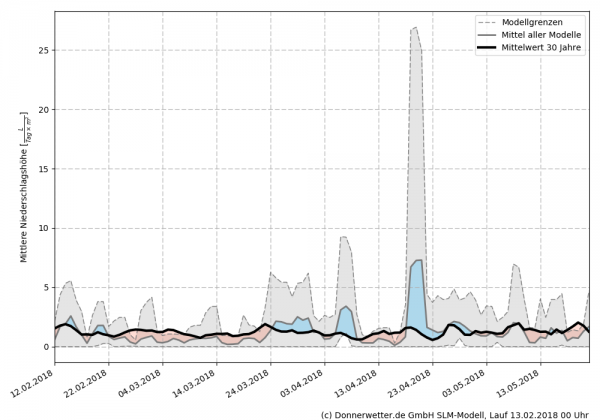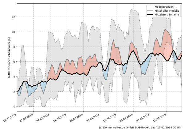 Den meist unterdurchschnittlichen Temperaturen in den kommenden Wochen stehen im Westen eher unauffällige Niederschlagssummen gegenüber - die Tendenz geht aktuell aber in Richtung "leicht zu trocken". Die Sonne macht sich in der zweiten Monatshälfte dabei weitgehend rar, erst für den März berechnet das aktuelle Modell wieder längere Sonnenphasen am Stück.