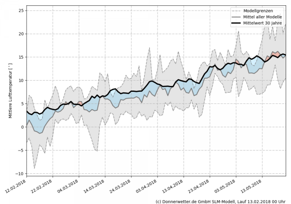 Unsere aktuellen Langfristprognosen für Lufttemperatur, Sonnenscheindauer und Niederschlagshöhe.