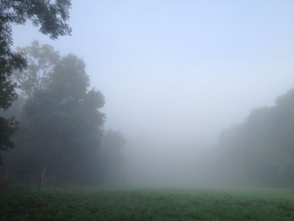 Meist kondensiert dann schon in der ersten Nachhälfte das in der Luft enthaltene Wasser. Es bildet sich eine auf dem Boden aufliegende Wolke - Nebel.