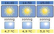 „Wenn wir ehrlich sind, wollen wir doch gar nicht wissen, ob wir heute den kältesten Tag seit 100 Jahren haben. Oder warum der Hochdruckeinfluss nicht bis nach Deutschland reicht. Wir wollen wissen, ob wir an der Bushaltestelle im Regen stehen oder ob man nach dem Regen doch noch einen Spaziergang wagen kann“, meint Michael Klein (33). Sein Wetterservice Donnerwetter.de wagt sich weit vor und bietet als erster Wetterdienst weltweit eine Prognose des Wetters der kommenden 2 Stunden an. In 10 Minuten-Abständen werden der Wetterzustand und die Temperaturen für die gewählte Stadt angezeigt.