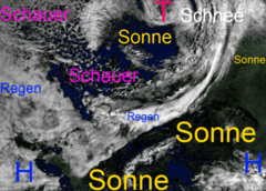 Meist wolkenloser Himmel und strahlender Sonnenschein