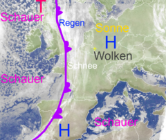Störungsfront mit Regen und Schnee