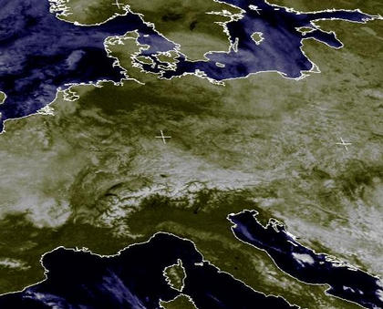 Auf dem Satellitenbild von heute morgen sind nur noch wenige Wolken im Süden Deutschlands zu erkennen. Nur am nördlichen Rand der Alpen sind sie noch etwas stärker vertreten, hier schneit es noch etwas. Die südlichen und westlichen Alpen sind dagegen wolkenfrei. Deutlich sind schneebedeckte Höhenzüge und Täler zu erkennen.