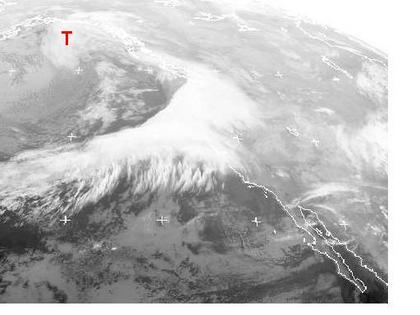Die dichten Wolken über dem Nordwesten der USA und Westkanada gehören zu einem Sturmtief über dem Golf von Alaska. Seine Ausläufer sorgen heute für kräftige und ergiebige Niederschläge und stürmischen Wind von British Columbia bis in den Norden von Kalifornien und Nevada. (Bildquelle: NERC Satellite Receiving Station, Dundee University, Scotland, http://www.sat.dundee.ac.uk/)