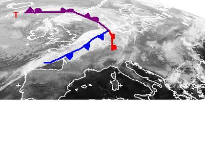 Die Ausläufer von Tief 'Dorothee' bei Island sorgen heute für dichte Wolken und Regen von Südskandinavien über Nord- und Westdeutschland bis nach Frankreich. Weiter im Süden und Osten sorgt dagegen leichter Hochdruckeinfluss für meist freundliches Wetter mit nur wenigen Wolken.