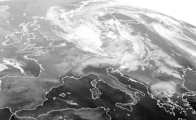 Auf dem Satellitenbild von Donnerstag früh erkennt man viele dichte Wolken die sich vor allem über Dänemark und Deutschland befinden. Sie gehören zu einem Tief über der Ostsee und bringen heute teils kräftigen und länger anhaltenden Regen. Über Frankreich, der Iberischen Halbinsel und im Mittelmeerraum sorgt Hochdruckeinfluss für eine nur leichte Bewölkung.
