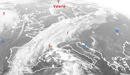 Heute zeichnet sich auf dem Satellitenfoto ein breites Wolkenband von der Iberischen Halbinsel, über Frankreich, die Beneluxstaaten, Deutschland, Polen, Skandinavien bis in den Norden von Russalnd ab. In diesen Regionen kommt es häufig zu Regen oder einzelnen Schauern, recht ergiebig fällt der Regen dabei im Süden Spaniens und in Südfrankreich aus. Hinter dieser nur zögerlich nach Südosten ziehenden Kaltfront lockert die Bewölkung allmählich wieder auf und es kommt nur noch zu einzelnen Schauern. Vor der Kaltfront im Süden und Osten Europas bringt Hochdruckeinfluss meist freundliches Wetter und viel Sonnenschein.