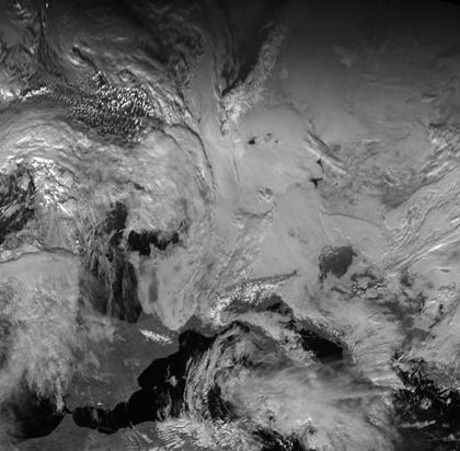 Das Hoch 'Bob' bestimmt das Wetter über Nordosteuropa, aber auch in Deutschland. Dabei hält sich jedoch von Schweden bis zum Alpenrand eine niedrige, aber dichte Wolkendecke. Die Alpen mit ihren hellen Schneeflächen ragen jedoch aus dem Wolkenmeer heraus. Von den Britischen Inseln her ziehen Tiefausläufer mit zunächst meist nur höheren Wolkenfelder nach Mitteleuropa.