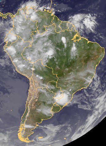 Auf dem heutigen Satellitenbild von Südamerika sind besonders über Teilen des Nordens und des Westens des Kontinents teils hochreichende Wolken zu erkennen. Dabei treten unter diesen Wolken vielfach kräftige Schauer und Gewitter auf.