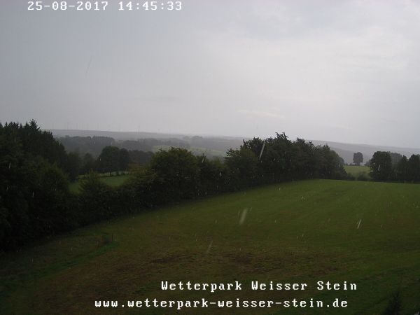 Der Blick auf das Webcambild in der Eifel zeigt die Gewitterlinie ganz im Westen.