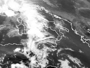 Das Wolkenband von Norditalien bis nach Tunesien gehört zu einem Tief über dem Golf von Lyon. Entlang seiner Kaltfront bilden sich heute zum Teil kräftige Schauer und Gewitter.